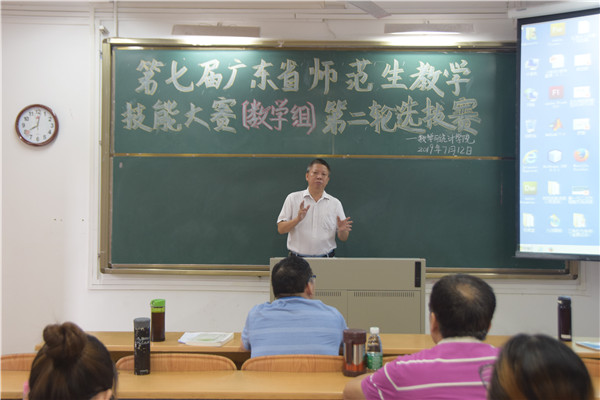 2019年7月12日上午,我院在榕燕楼205室举行了第七届广东省师范生教学技能大赛(数学组)第二轮选拔赛。出席本次比赛的评委有我院副院长刘小松、吴勇旗,数学系老师欧伯群和薛志坚。