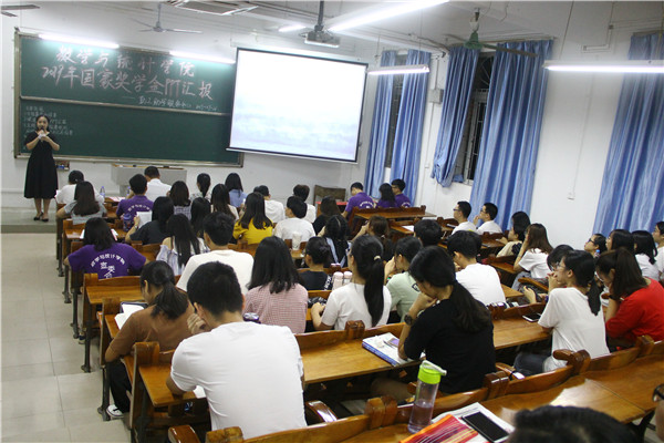 9月26日晚,我院于榕燕楼107室召开2019年国家奖学金评选汇报会,党委唐洪浪副书记、辅导员、国家奖学金参评对象以及六大机构学生干部参加了此次会议。