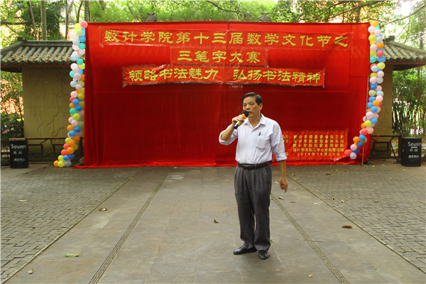 10月26日上午,我院于古榕广场举办第十三届数学文化节之三笔字大赛决赛。书法老师张治平受邀担任本次活动的评委嘉宾,辅导员老师、校团委传媒中心以及各二级学院的干部代表参加,决赛由我院宣委会主办。