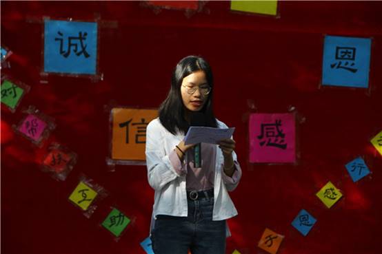 总领队吴华清希望引领队员和对象平衡好学习与工作,要将学习放在首位,并在工作上恪尽职守,做到工作学习两不误。队员陈小怡表示引领队员要尊重并主动帮助引领对象,秉持爱心、耐心、责任心三心合一,做到多引导、多鼓励、多提建议,而作为引领对象心怀热情并常怀感恩。受助新生黄宇表示会牢记知恩、感恩、报恩,常怀感恩之心、常行感恩之事。并引用“上善若水,虚怀若谷”,将秉持谦虚谨慎,诚信感恩、勤勉上进。