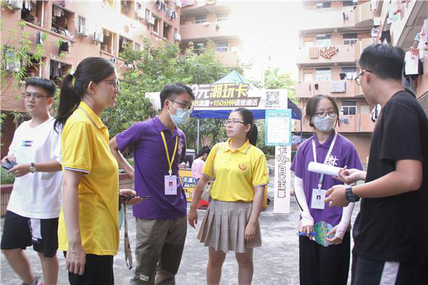辅导员向学生干部了解迎新进展(冯滢滢 摄)