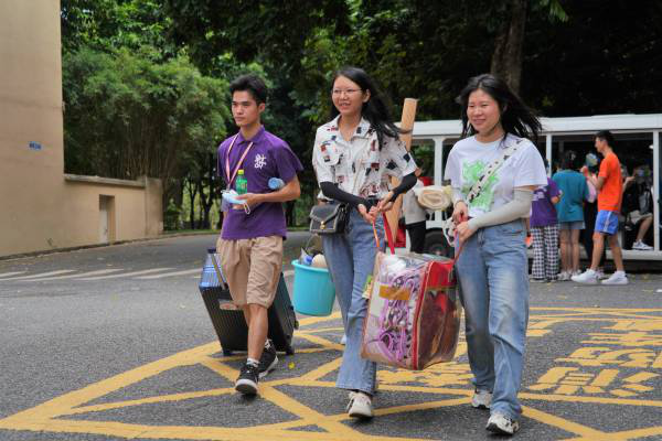 志愿者帮助新生拿行李(梁梓枫 摄)