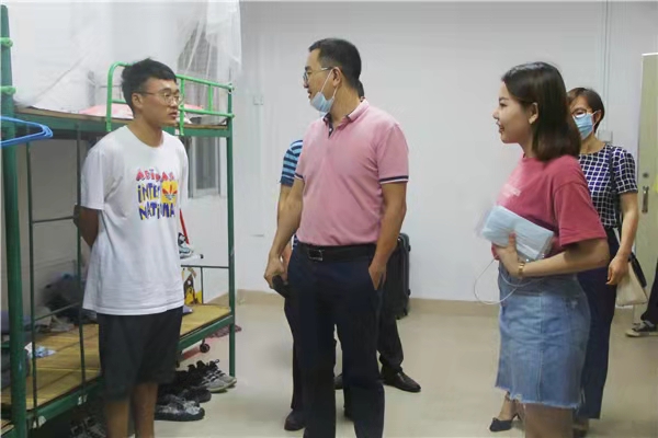 在走访过程中,学院领导班子与新生们进行亲切交谈,关心省外同学是否适应学校生活,详细了解新生入学后在住宿、生活方面的问题,并叮嘱新生们要尽快熟悉校园生活,遵守校规校纪,做好安全防范。遇到困难可及时向助班师兄师姐以及老师们求助,同时为接下来的军训生活做好准备,尽早做好角色转换。