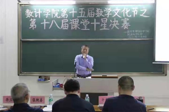 为充分展现大学生的师范技能,给同学们提供展示自我的平台,我院于11月14日晚在榕燕楼107室举办了第十五届数学文化节之第十八届课堂十星比赛决赛。本次活动特邀学院党委副书记全光华、副院长于广龙、数学系教师张映姜、欧伯群、李立莉、薛志坚担任评委。校团委学生干部和学院主要干部及各班级代表观摩了本次比赛。