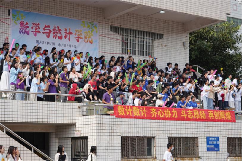 凝心聚力共创辉煌,务实创新阔步前进。夺得九连冠的传奇佳绩,离不开数计健儿每日的艰苦训练,更离不开教练团队的耐心指导和学院领导老师们的高度重视。在校运会期间,学生干部及时跟进、提醒运动员检录参赛,并为运动员们准备相关药品、运动员饮料,以便赛后及时补充能量,应对紧急情况。学院党政领导班子成员、学院辅导员老师更是亲临大本营和比赛现场,亲切问候学院赛况和幕后工作,为运动健儿们加油鼓劲,为负责干部们增添动力,领导老师的悉心关怀给数计学子带来浓浓暖意。历经一个多月的专项训练,数计学子在比赛场上信心满满,用实际行动诠释了坚持不懈、勇往直前、不断进取的精神风貌。