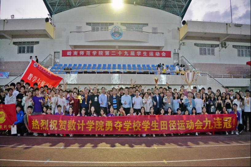 青春正火热,拼搏不落幕!11月19日,岭南师范学院第29届学生运动会在雷阳区田径运动场拉开帷幕。今年的校运会特别的点是:增加了体测的团体项目。我院102名优秀运动员乘风破浪、一路扬帆高歌,共斩获7个单项第一、3个团队项目第一,以275分傲人成绩卫冕九连冠,并荣获体育道德风尚奖,取得体育竞技和精神文明双丰收。副校长金义富在闭幕式的致辞中也高度赞扬了我院在校运会上取得九连冠的辉煌成绩。