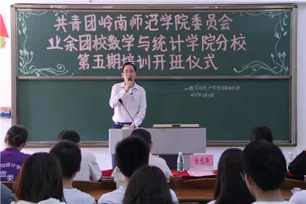 全光华致辞,他表示这次培训是一次十分难得的学习机会,有利于提高学生干部的思想觉悟,塑造学院学生干部的良好精神风貌,培养各学生干部的责任与担当,助力学院做好新时代共青团工作。由此,他提出了四点意见,一是正确认识参加团培的重要意义;二是增强学生干部集体的凝聚力和战斗力;三是理解百年奋斗的历史意义,从中汲取智慧和力量;四是用青春奋斗致敬百年党史,永远紧跟党的步伐。同时,全光华强调深入学习贯彻党的十九届六中全会精神、学习习近平总书记七一重要讲话精神以及习近平总书记关于新时代青年工作重要思想的重要性,勉励同学们严格要求自己,提高自身修养,努力成为能担当起民族复兴重任的新时代青年。