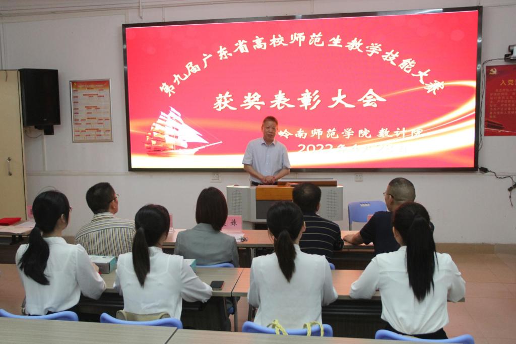 于广龙介绍我院获奖情况。陈青表获得高中组一等奖全省一等奖第一、余泳娴获得高中组三等奖全省三等奖第一,同时获得“田家炳杯”第七届全国师范院校师范生教学技能大赛二等奖、樊紫媚获得初中组一等奖全省一等奖第一、陈慧琼获得初中组一等奖全省一等奖第二。欧伯群、薛志坚获得优秀指导老师称号。