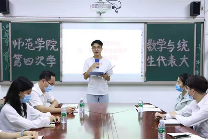 为深入学习贯彻习近平总书记致全国青联十三届全委会和全国学联二十七大的贺信和党中央致词精神,总结上一届学生代表大会以来的工作,选举产生第四届学生会组织主席团成员,我院于6月11日在榕燕楼会议室召开第四次学生代表大会。参加本次会议的有我院党委副书记全光华、我院团委书记代超群、校学生会办公室负责人黄明慧以及我院学生代表。按照疫情防控工作要求,本次会议采取线上线下相结合的方式进行开展。