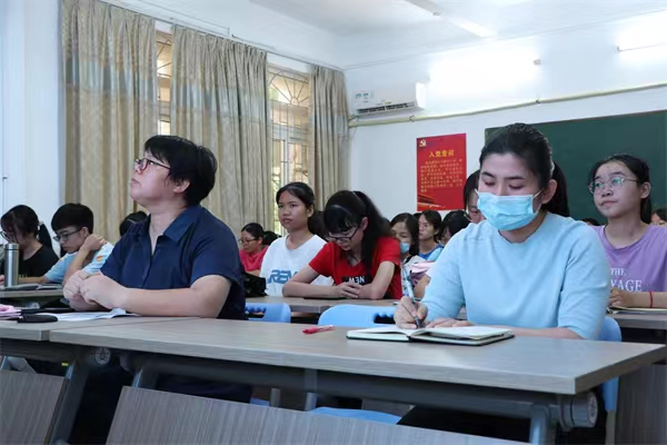 为提高学生说课能力和数学专业素养,6月22日上午,我院于榕燕楼培训室开展“如何进行数学说课”专题讲座,邀请佛山市初中数学教师技能大赛评委,沙滘中学数学高级教师黄金雄老师作为主讲人,参加本次讲座的有我院主任李立莉、辅导员代超群和我院学生代表。
