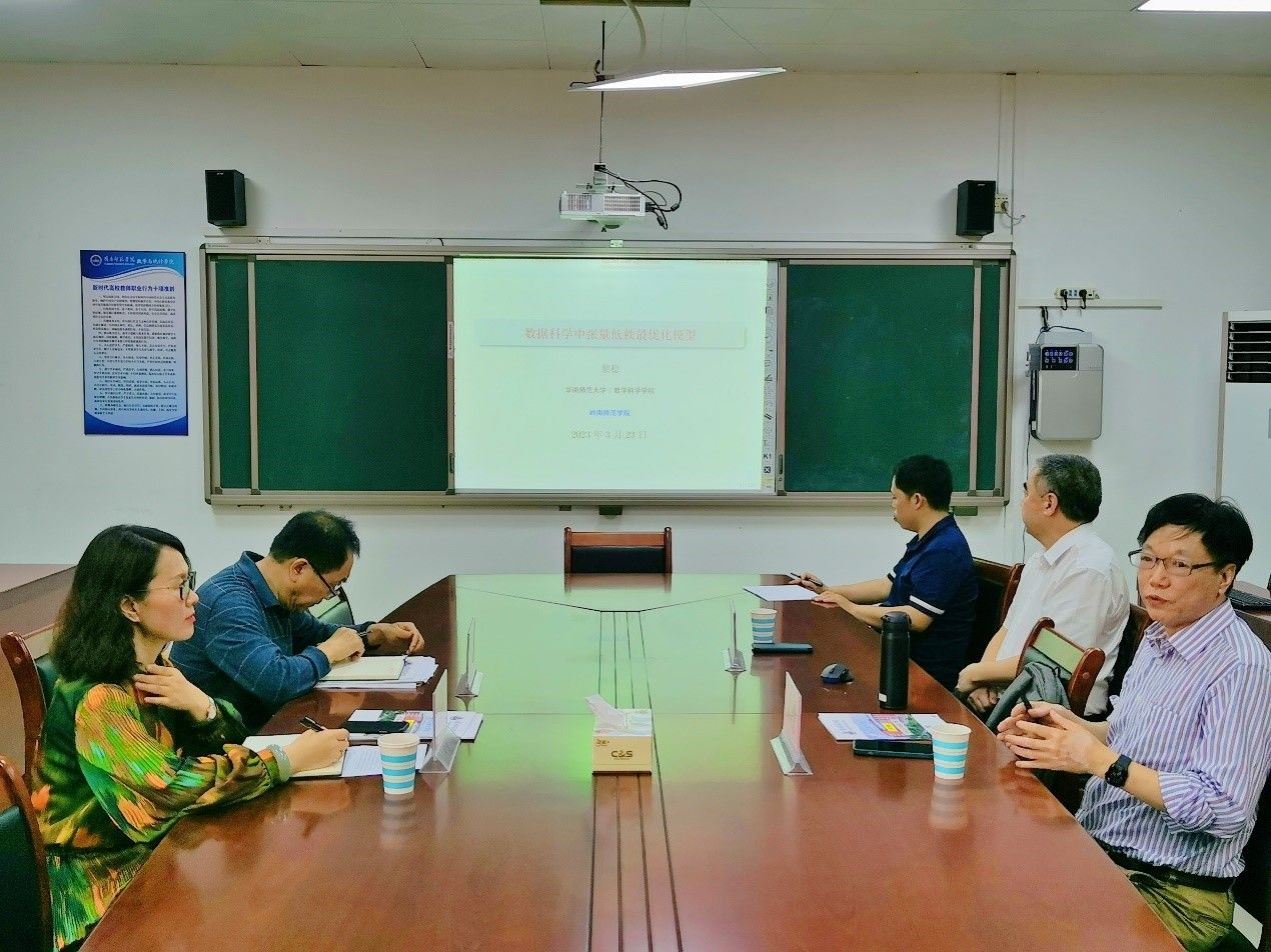3月23日,应我院邀请,华南师范大学数学科学学院黎稳教授来我院进行学术交流,在第一教学楼学院会议室作了题为《数据科学中张量低秩最优化模型》的学术报告,广东海洋大学数学与计算机学院陈入云副院长、学院栾姝院长、吴勇旗副院长及部分教师代表参加了此次报告会。