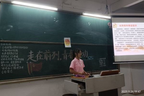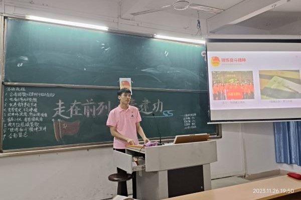 党的二十大报告提出了“广大青年要立志做有理想、敢担当、能吃苦、肯奋斗的新时代好青年”的重要要求,我院深入学习贯彻党的二十大精神,11月26日晚,我院“培根”宣讲团成员罗小丽、丘铠乐及21数本4班全体同学开展了以“锤炼奋斗精神”为主题的党史宣讲。