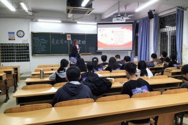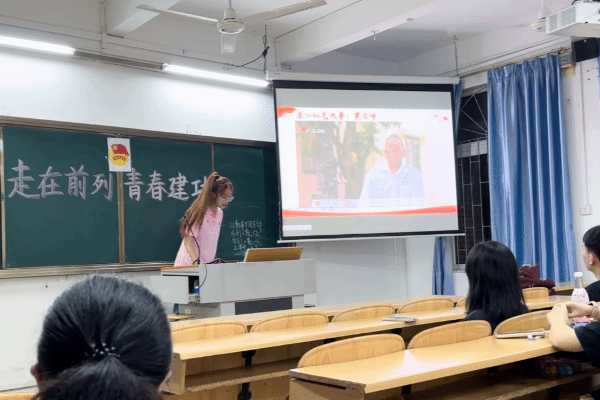 2023年10月9日晚,“培根”宣讲团成员陈音竹于榕燕楼305开展以“走湛江红路,扬二十大精神”为主题的宣讲活动,2021级数学与应用数学1班全体学生参加,从宣讲中回顾湛江红色历史,感悟党的二十大精神。