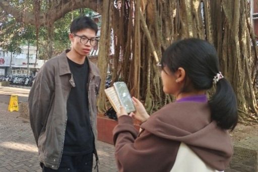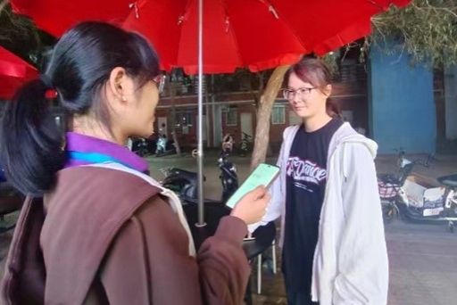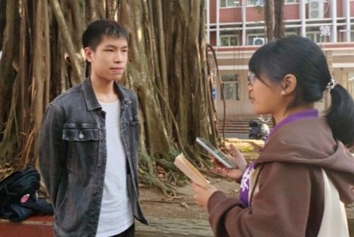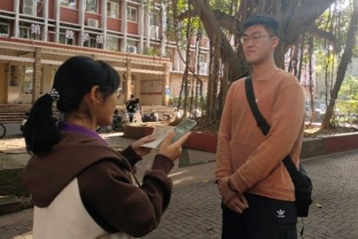 采访女子跳远、女子100米跨栏金牌获得者伍淼琳(数计学院 摄)