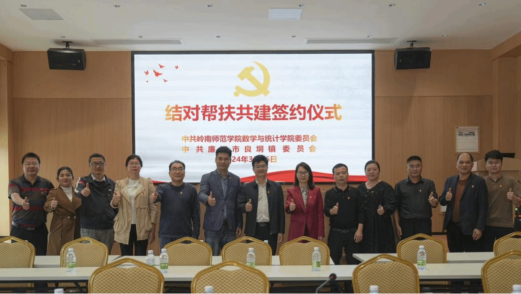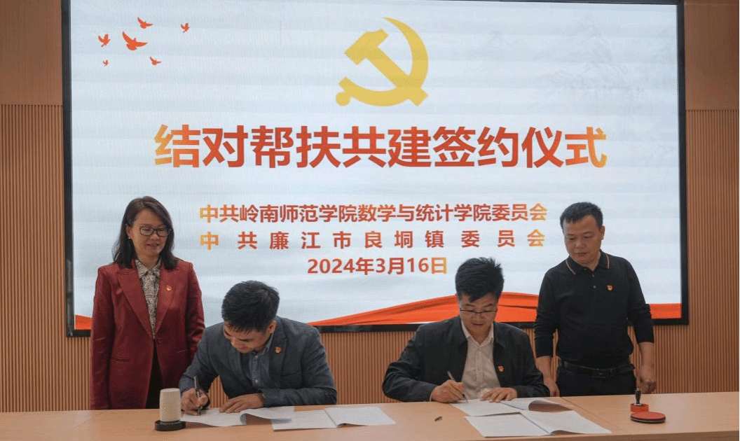 为充分发挥高校人才、科研和学科优势,助力廉江市地方经济社会发展,深入推动“百千万工程”落地见效,扎实推进“双百行动”走深走实。3月16日,岭南师范学院数学与统计学院党委和廉江市良垌镇党委“百县千镇万村高质量发展工程”结对帮扶签约仪式在廉江市良垌镇中塘革命纪念馆会议室举行。