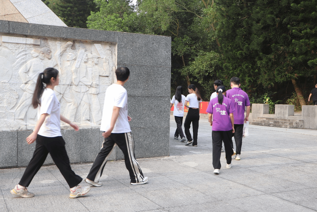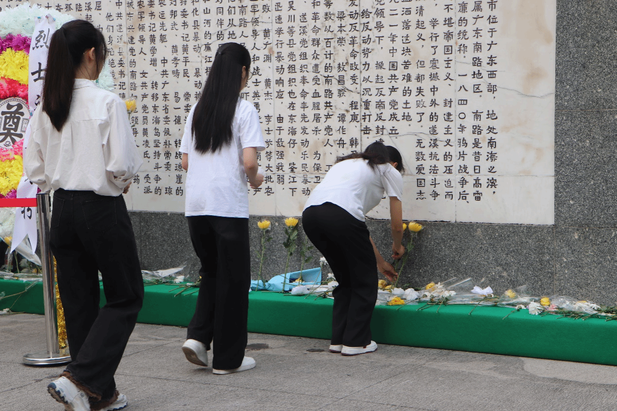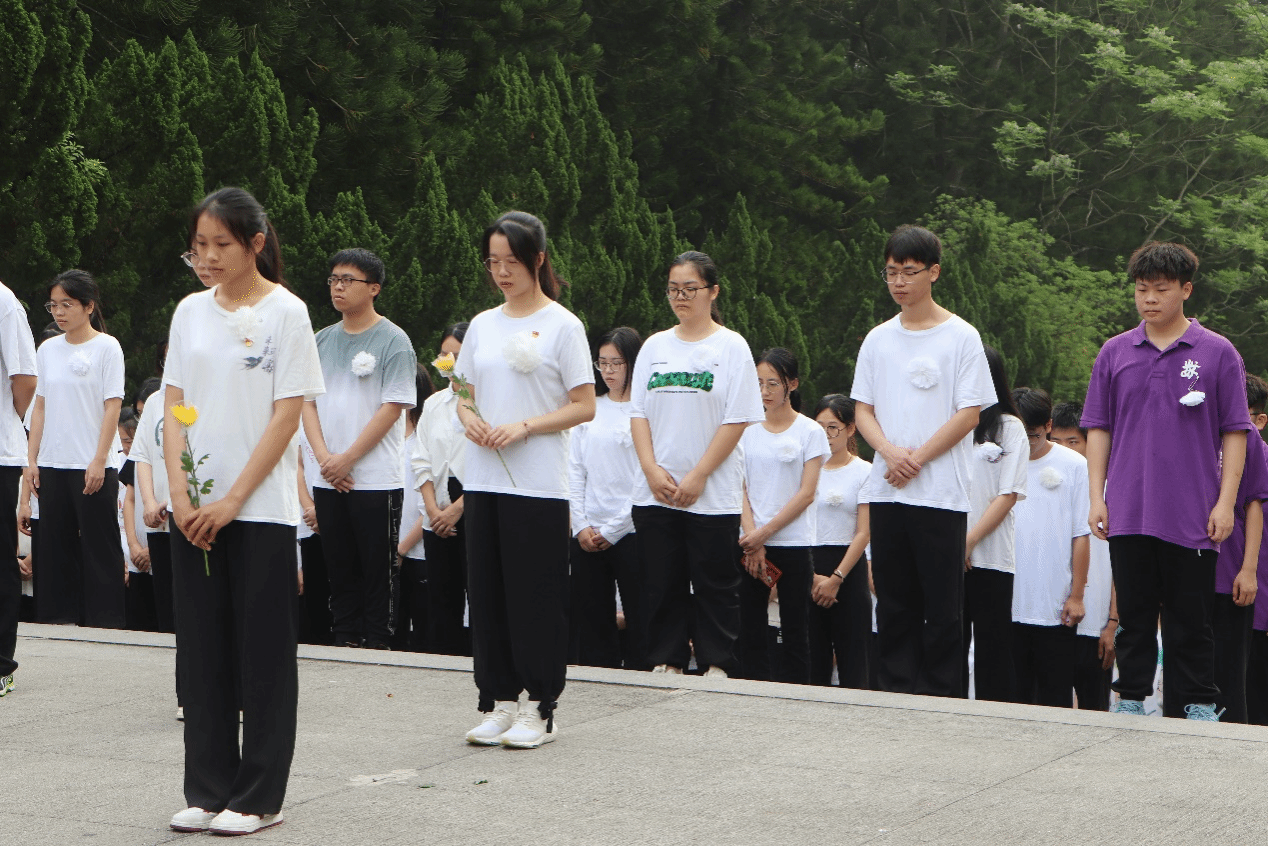 全体人员怀着庄重的心情,身着素净的服装,面容肃穆,在古榕广场集合完毕后整齐有序的步行前往寸金公园烈士陵园。到达烈士陵园后,全体师生瞻仰烈士纪念碑,学生代表向烈士献花,缅怀革命烈士的丰功伟绩。随后,全体人员默哀一分钟。