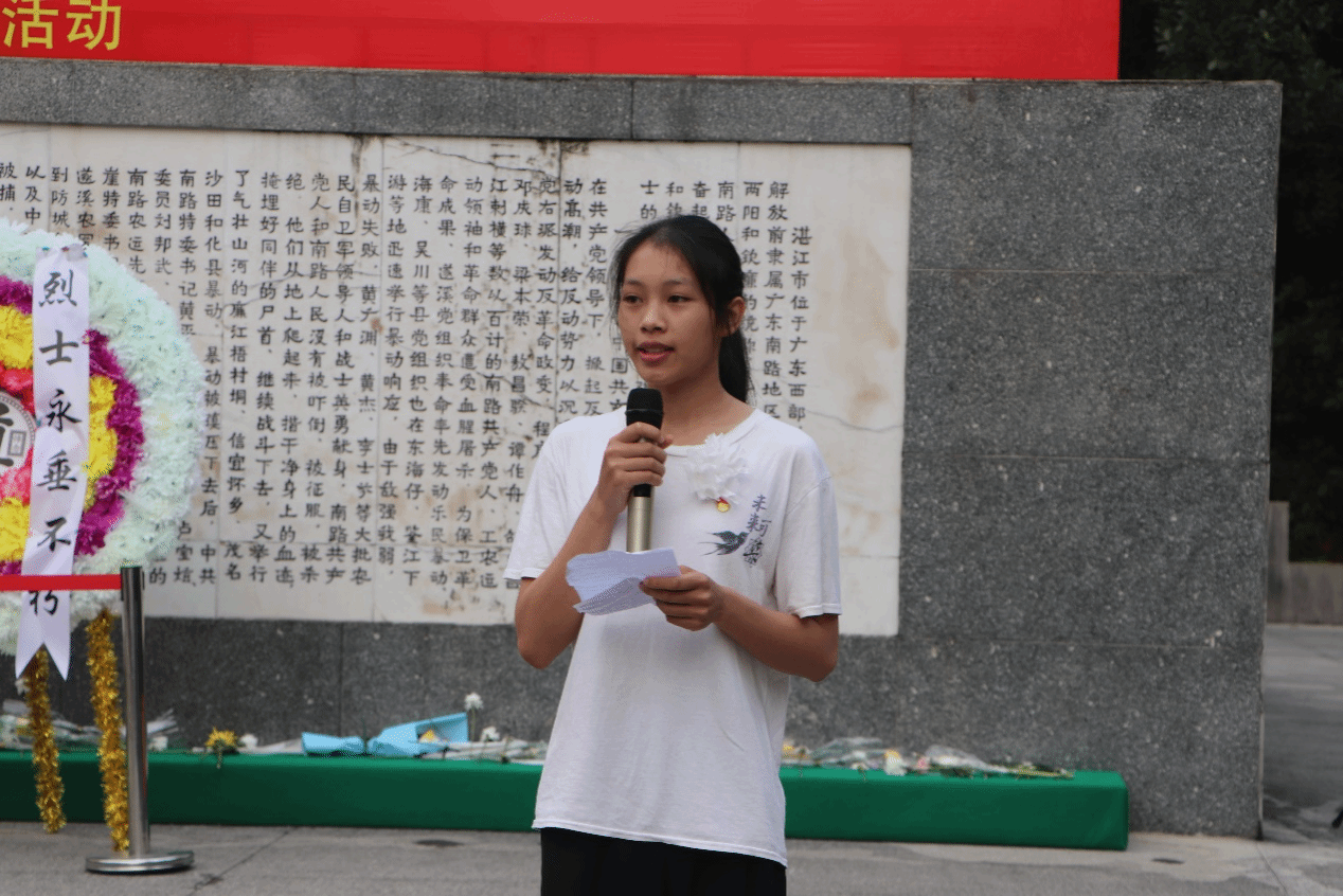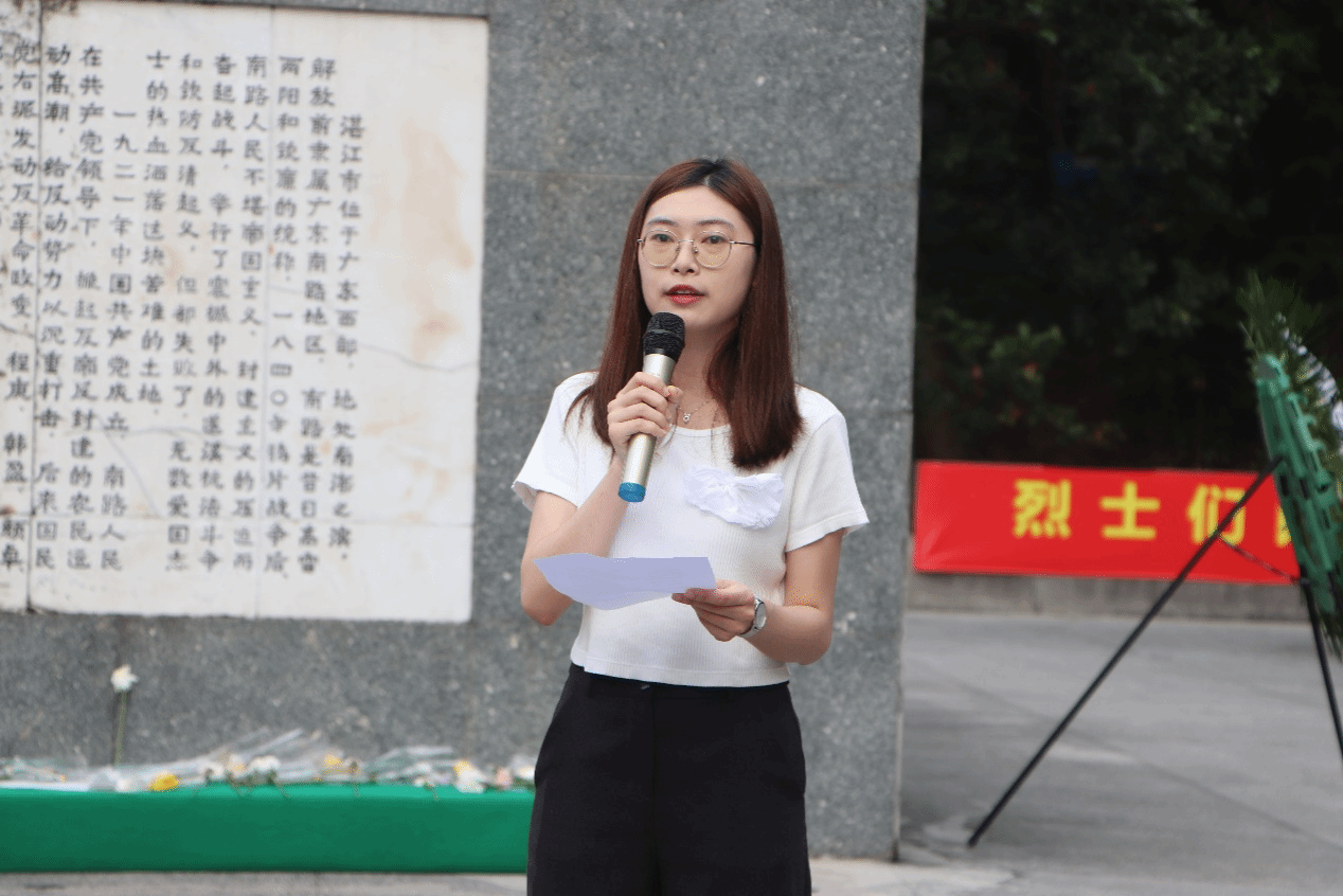 辅导员张嫣则在发言中强调,先烈艰苦的革命斗争精神激励着我们奋发进取,作为新时代的岭师学子,在百年奋斗新征程的时代背景下,应当坚定理想信念,牢记初心使命,立志将个人梦想融入实现中国梦的伟大实践之中;应当提高理论修养,增强能力本领,在学习和实践中打牢自身成才根基;应当提升创新意识,培育创新精神,以开拓创新的勇气和求真务实的精神研究新问题、探索新方法。