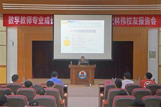 “生命因教育而快乐,生命因实践自己的教育理念而精彩。”报告会上,林伟校友从教师能力素养培养角度,结合就业前景,从专业选择和学习工作感悟等方面详细讲述准备好当一名数学教师的定位。同时深入剖析了职业能力培养、课程标准解读、能力结构塑造等方面,点明教师是要培养有孝道,敢于思辨,对社会有价值的人,向我们剖析了如何成长为一个优秀的数学教师。他还分享了求学时的经历,建议大家夯实专业基础,提升专业技能牢牢把握大学中的平台与机遇,不断充实自我、历练自我、发展自我。在讲座的最后,他希望同学们能在求真中扎下坚实的学术根基,在思辨中培养敏锐的创新思维,做好眼前小事,多读书不空谈、重行动去追求更有高度、更有境界、更有作为的人生。