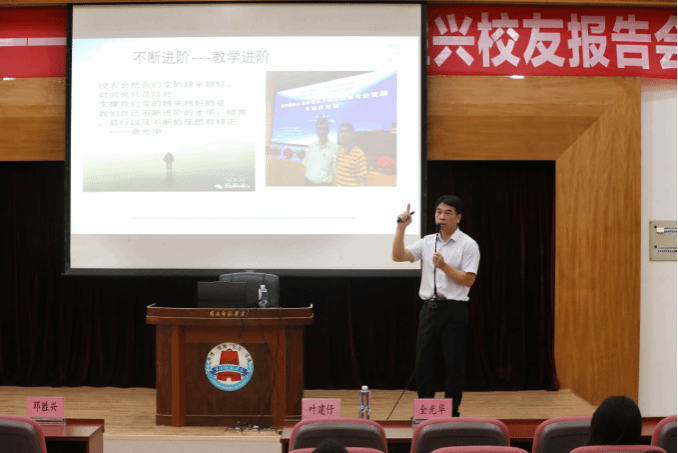“人生可以没有灿烂,但却不能甘于平庸。”在讲座的最后,邓胜兴校友建议同学们从教育教学的高度、宽度、深度三个方面实现教师专业成长的追求,一是提升教师道德情操的高度,从而不断追求卓越;二是不断拓宽教师教学视野的宽度,从而提升学识素养;三是不断挖掘教师教育思想的深度,从而学会智慧思考。