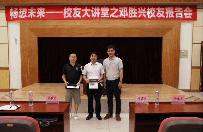 会议期间,数计学院党委全光华副书记向大家介绍了邓胜兴校友的优秀成就,并代表数计学院全体师生对他的到来表示由衷的感谢。随后数计学院党委叶建仔书记为校友颁发纪念品,希望优秀校友们可以与岭师有更多的交流和合作的机会。