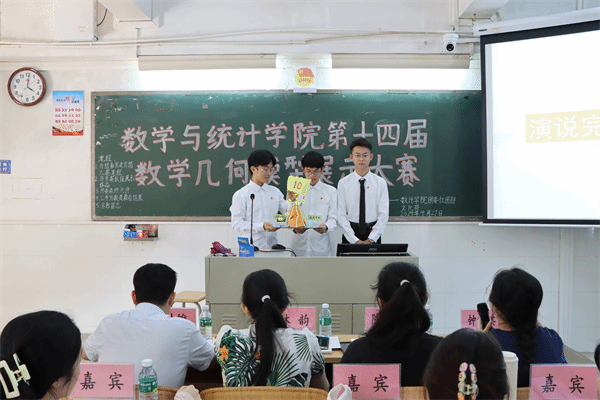 随后,主持人公布分数及最后结果,本届数学几何模型展示大赛拉下了帷幕。通过本次比赛,同学们将美好愿景与数学之美融入到作品中,在作品的创作与完善过程中得到了各方面的锻炼。本次比赛也达到“以赛促学”的目的,不仅是同学们展现才能的舞台,更是学以致用的一大推力。