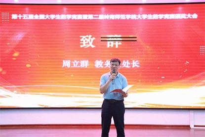 5月18日,我校在教务处、创新创业教育学院和我院共同组织下,成功举办了第二届岭南师范学院大学生数学竞赛,共有14个二级学院的890名同学报名参加了竞赛。经过评审和公示,最终有194名同学获得第二届岭南师范学院大学生数学竞赛的一、二、三等奖。周立群处长在致辞中同样对获奖的同学表示祝贺,并对参与组织、命题、监考和评卷等工作的老师和各二级学院负责数学竞赛的指导老师表示衷心的感谢;同时希望同学们继续努力,认真装备、积极参加下半年的国赛。张洪军副院长宣读了表彰决定和获奖学生名单,指导老师代表甘乃峰副教授和获奖学生代表李金凤进行了发言。
