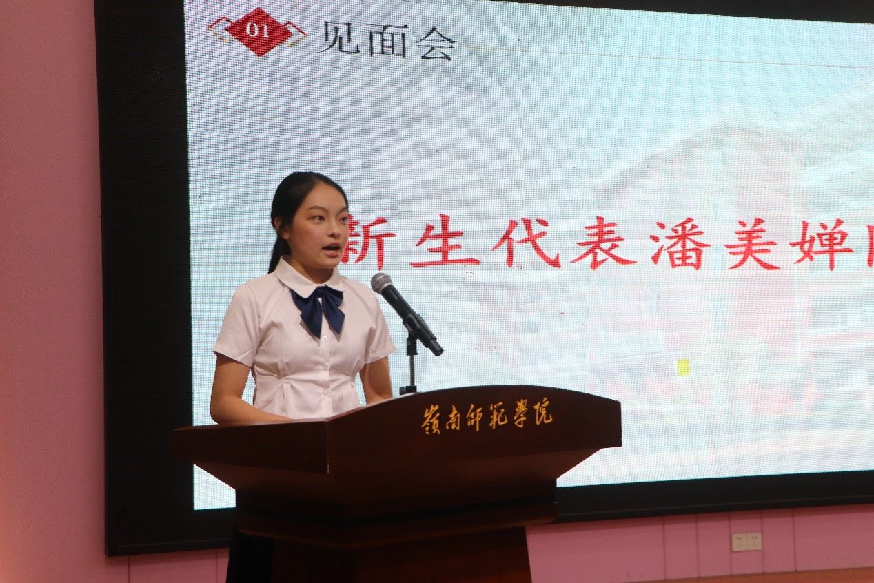 新生代表魏雪花和潘梅婵作为新生代表,共话高考过往,展望大学蓝图。她们呼吁全体新生在未来四年中努力做到:转变角色,适应环境;树立目标,付诸实践;广泛涉猎,丰富自我等三个方面。