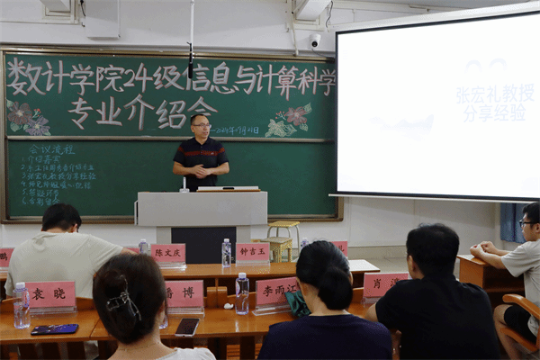 为帮助新生更好地了解所学专业,明确学习目标,规划未来生活,9月21日,数学与统计学院2024级信息与计算科学专业介绍会在弘雷楼603室举行。参加该专业介绍会的嘉宾有数学与统计学院信息与计算科学系主任周秀香老师、系副主任刘雄老师、信息与计算科学系全体教师、2024级信计助理班主任以及2024级信计全体新生。