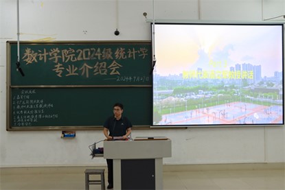 会议伊始,于广龙副院长代表学院对24级统计新生的到来表示热烈欢迎。他强调了统计学的历史性与重要性,并简单介绍了我院的师资队伍。同时,于广龙副院长对新生们提出以下四点建议:一是学会自主学习,完成角色转变,适应大学生活;二是规划大学生活,注意劳逸结合,同时以学业为重;三是增强安全意识,提高独立自主的能力;四是遵纪守法,做一名严格自律的好学生。最后,于广龙副院长期待统计系新生能在大学新征程中努力进取,放飞青春梦想。