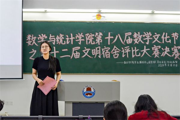 为了加强宿舍文化建设,提高学生的文明素养,营造温馨、和谐的宿舍环境,11月13日晚,我院于教五A栋103举办了第十八届数学文化节之第十二届文明宿舍评比大赛。参加本次活动的嘉宾有我院辅导员林韵老师、11间宿舍参赛代表、部分二级学院宿管部学生干部代表和学院学生干部代表。