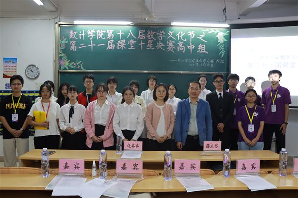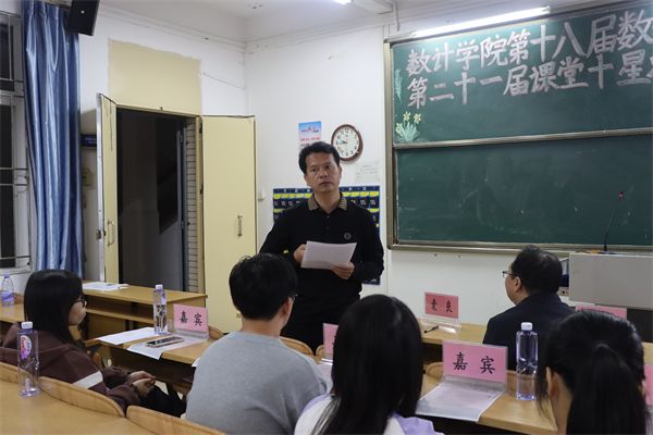 为丰富我院学生的校园文化生活,进一步提高学生的专业文化素养,促进学生的全面发展,11月24日晚,我院于榕燕楼403室、405室举办第十八届数学文化节之第二十一届“课堂十星”的决赛。本次活动由数计院学生会学习部和团委创新创业部组织,由湛江市寸金培才学校张冉冉老师、麦良老师,我院薛志坚老师、钟吉玉老师担任评委,我院各班学生代表到场观摩比赛。