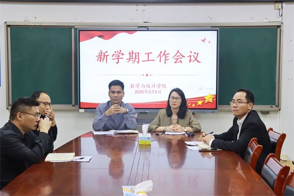 栾姝院长传达学校2025年度工作会议校长报告精神,并对新学期重点工作作出部署:一是强化思想政治引领,筑牢办学根基;二是推进人工智能应用创新,加强学科建设与科研创新;三是实施强师工程,打造高素质教师队伍;四是全力推进学院硕士点建设,持续加强信息与计算科学等专业建设,推动学院高质量发展。