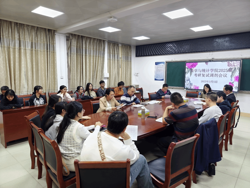 3月5日下午,我院于榕燕楼二楼会议室召开2025级考研复试调剂指导会议。我院院长栾姝、副院长于广龙、我院党委副书记全光华、各系主任、考研导师组成员、辅导员林韵老师以及2025级考研通过国家线的学生参加本次会议。