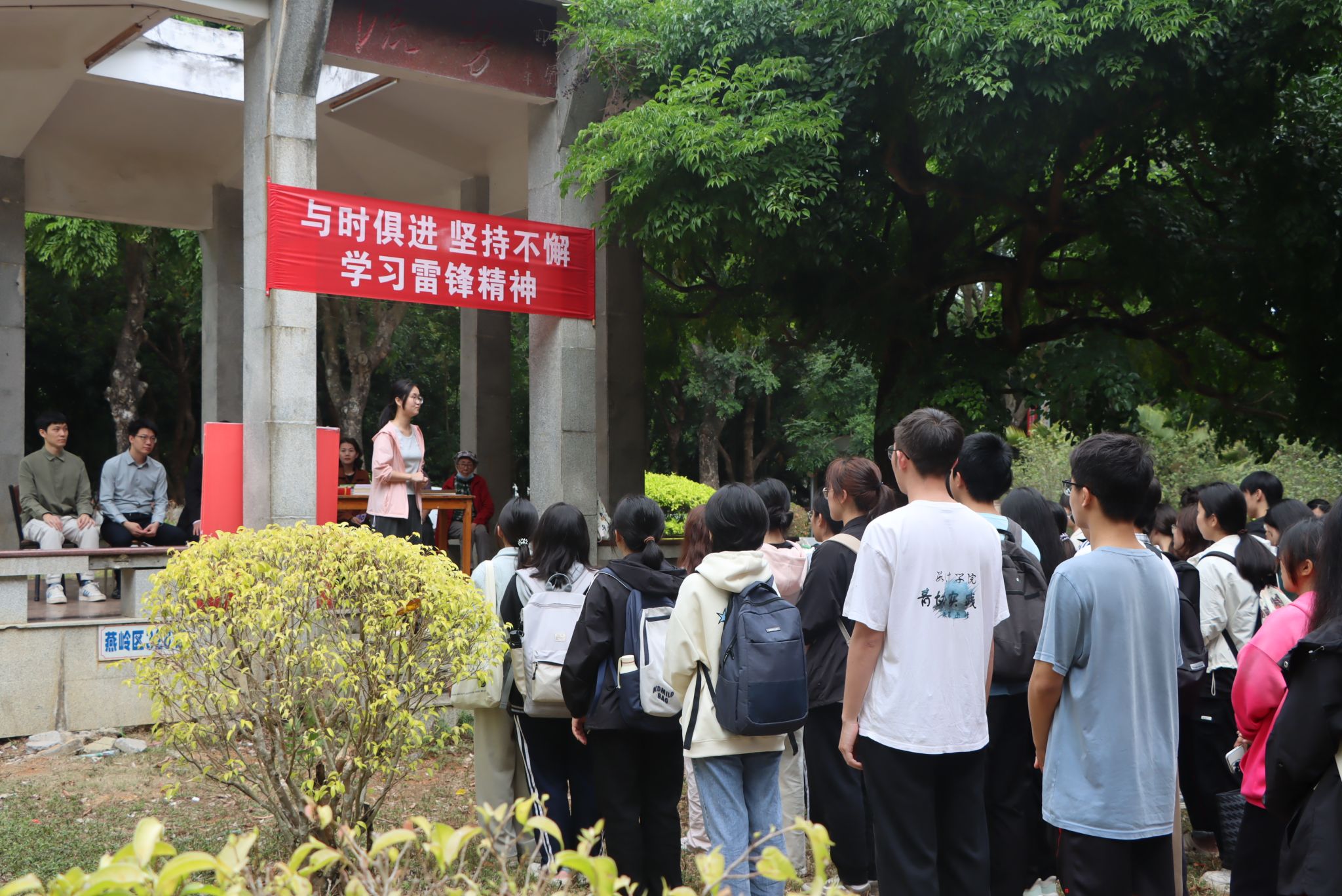 3月12日,流芳文化协会于燕岭区流芳亭成功举办“与时俱进,坚持不懈,学习雷锋精神”活动。学校关工委秘书长欧海清、团委副书记梁燕飞、规法处林学科、组织部林颂迪、关工委杨梅、我院党委副书记全光华、流芳文化协会指导老师郑光华老师以及辅导员李宇聪出席本次活动,流芳文化协会全体成员和学生代表参加本次活动,活动由流芳文化协会李洁滢主持。