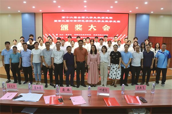 为表彰获奖我校学生在第十六届全国大学生数学竞赛、第三届岭南师范学院大学生数学竞赛中取得优异成绩,6月11日晚,数学与统计学院在弘雷楼511室举行了颁奖仪式,学校创新创业教育学院副院长梁燕飞、教务处副处长夏加亮,数学与统计学院党委书记叶建仔、院长栾姝、党委副书记全光华,二级学院负责数学竞赛活动的部分老师,部分指导老师以及全体获奖同学,会议由数学与统计学院赵海清老师主持。