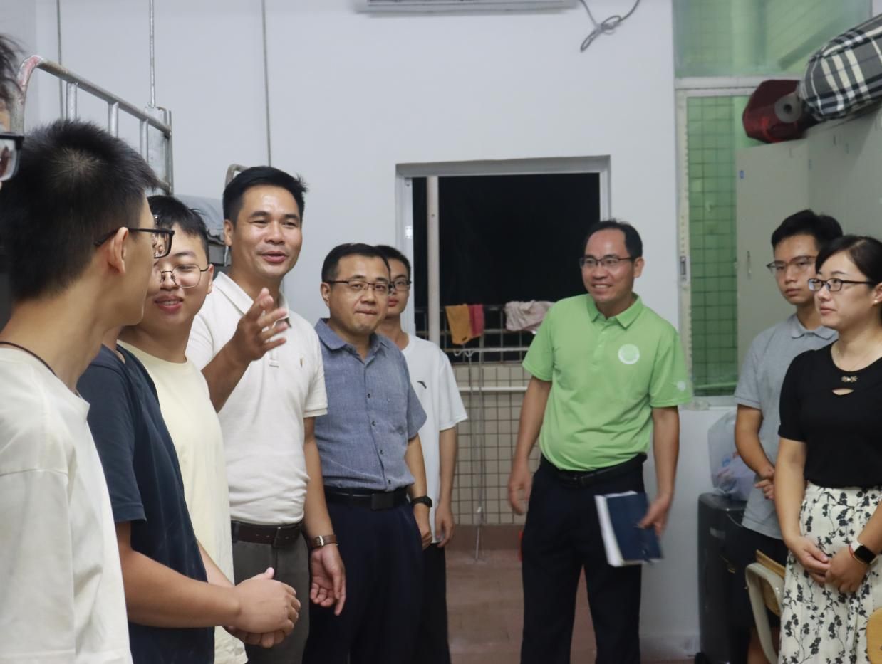 金风送爽,万象更新。9月13日晚,为深入了解新生的情况,帮助新生顺利开展学习生活,我院党委书记叶建仔、党委副书记全光华、挂职副院长徐晓蕾、2025级班主任、全体辅导员以及助理班主任等一行人到学院新生宿舍进行走访。