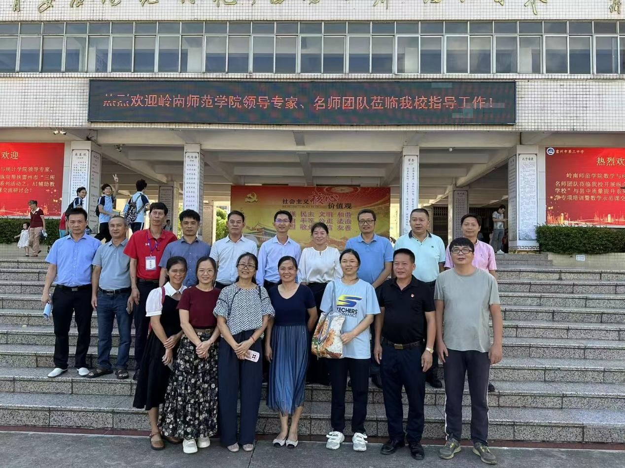 为深入贯彻《广东省“百县千镇万村高质量发展工程” 教育行动方案(2023—2027 年)》,全面落实《广东省师范(教师教育)院校纵向帮扶欠发达地区 “三所学校” 和县中质量提升工作方案 (2024-2027年)》与《岭南师范学院・雷州市人民政府 “三所学校” 和县中质量提升工作协议》,2025年9 月 17 - 18 日,岭南师范学院雷州帮扶团队八大任务负责人李子深、李观荣、徐鹏及团队成员李雨江,湛江市名师工作室主持人李虹及成员一行 7 人,深入雷州市第八中学、第三中学、第十五小学及附城镇中心小学,开展实地调研、AI 辅助教学培训和送教下乡活动。