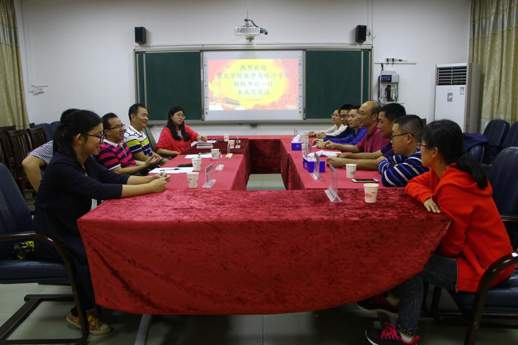 11月9日下午,肇庆学院数学与统计学院党委杨帆书记一行7人,到我院就党建与思想政治工作、青年教师培养教育以及学科竞赛等相关工作进行交流。我院党委李健彬书记及相关人员参加了会议,对他们的到来表示热烈欢迎。