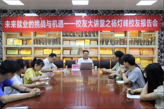 6月12日上午,我院在榕燕楼会议室举行校友大讲堂,邀请了广州涉外经济职业技术学院中职高考升学部校长、我校1997届校友杨灯峰作了题为“未来就业的挑战与机遇”的报告会,学院党委副书记全光华、辅导员林韵和2019级学生代表参加了本次报告会。