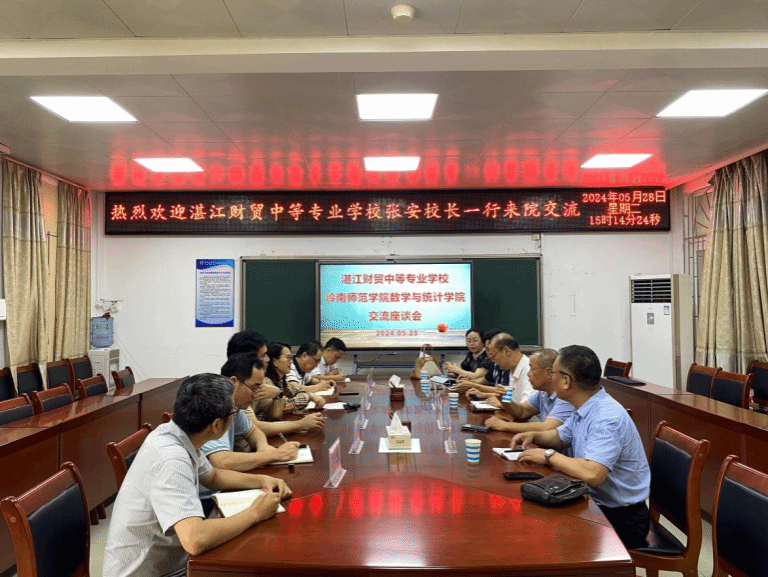 为助推我校与湛江财贸中等专业学校的深度交流,促进我院毕业生高质量充分就业,5月28日上午,我院于榕燕楼会议室召开交流座谈会。湛江财贸中等专业学校校长张安、党委副书记陈永东、信息技术专业科科长温浩明、信息技术系主任黎东辉、教师黄雅琴、我院党委书记叶建仔、院长栾姝、副院长吴勇旗、党委副书记全光华参加本次交流座谈会。