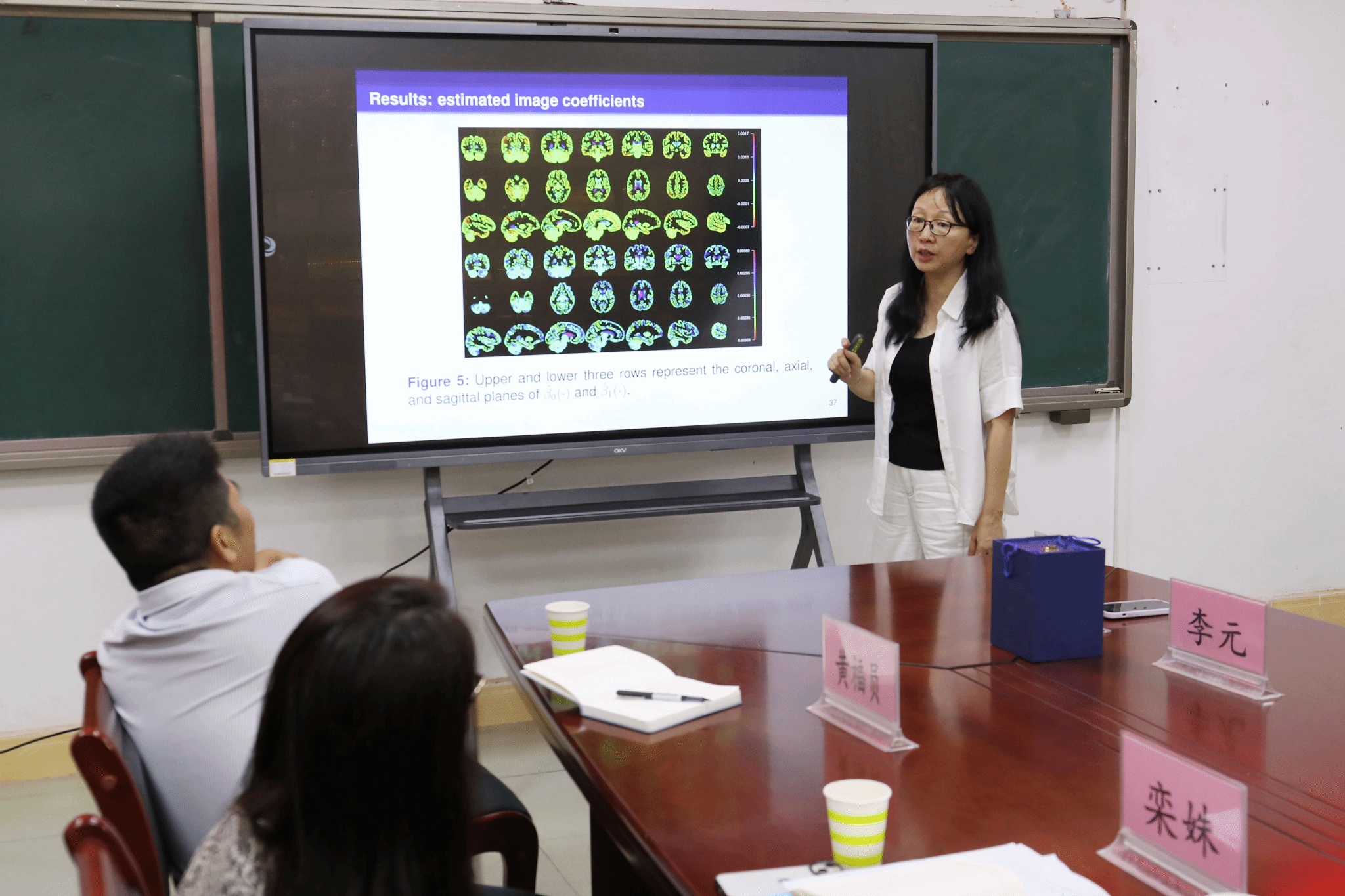 宋心远教授的学术报告在第一教学楼的二楼会议室举行,报告题目为“Joint Modeling of Longitudinal Imaging and Survival Data”;会议由栾姝院长主持,各位专家和学院部分老师共计约30人听取了报告。宋教授阐述了研究目的和数据处理方法,介绍了研究过程中运用的四个模型特点、建模过程、作用和使用条件,并就进一步的研究进行了展望。答疑环节,宋教授与在座的老师进行了深入的交流和讨论。
