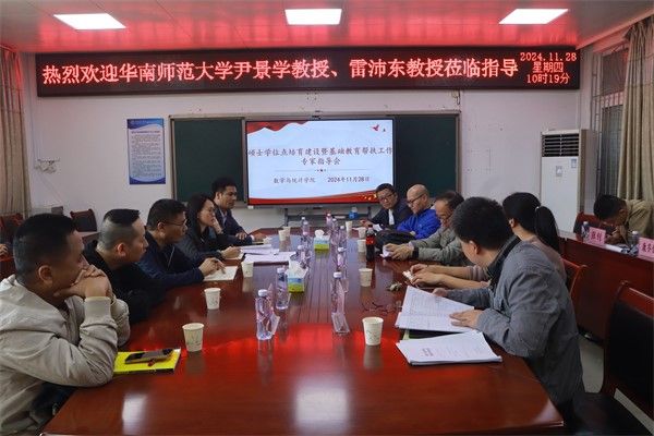 11月28日上午,我院于榕燕楼会议室召开硕士学位点培育建设暨基础教育帮扶工作专家指导会。华南师范大学数学科学学院尹景学教授、雷沛东教授、我院院长栾姝、党委书记叶建仔、副院长于广龙、副书记全光华、数学系主任李观荣、统计系主任赵海清、计算科学系主任周秀香及学位点骨干成员参加了会议,会议由我院院长栾姝主持。