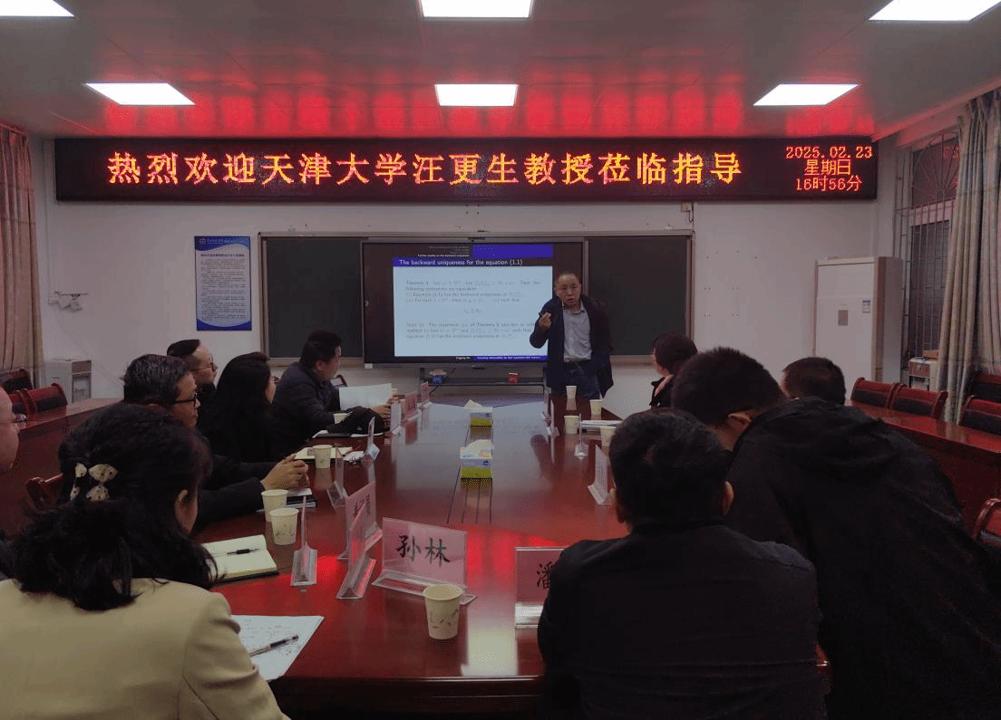 2月23日下午,我院邀请天津大学数学学院汪更生教授作题为《Sampling Observability for Heat Equations with Memory》的学术报告。我院院长栾姝教授,部分学术骨干教师参加了此次报告会,会议由我院院长栾姝教授主持。