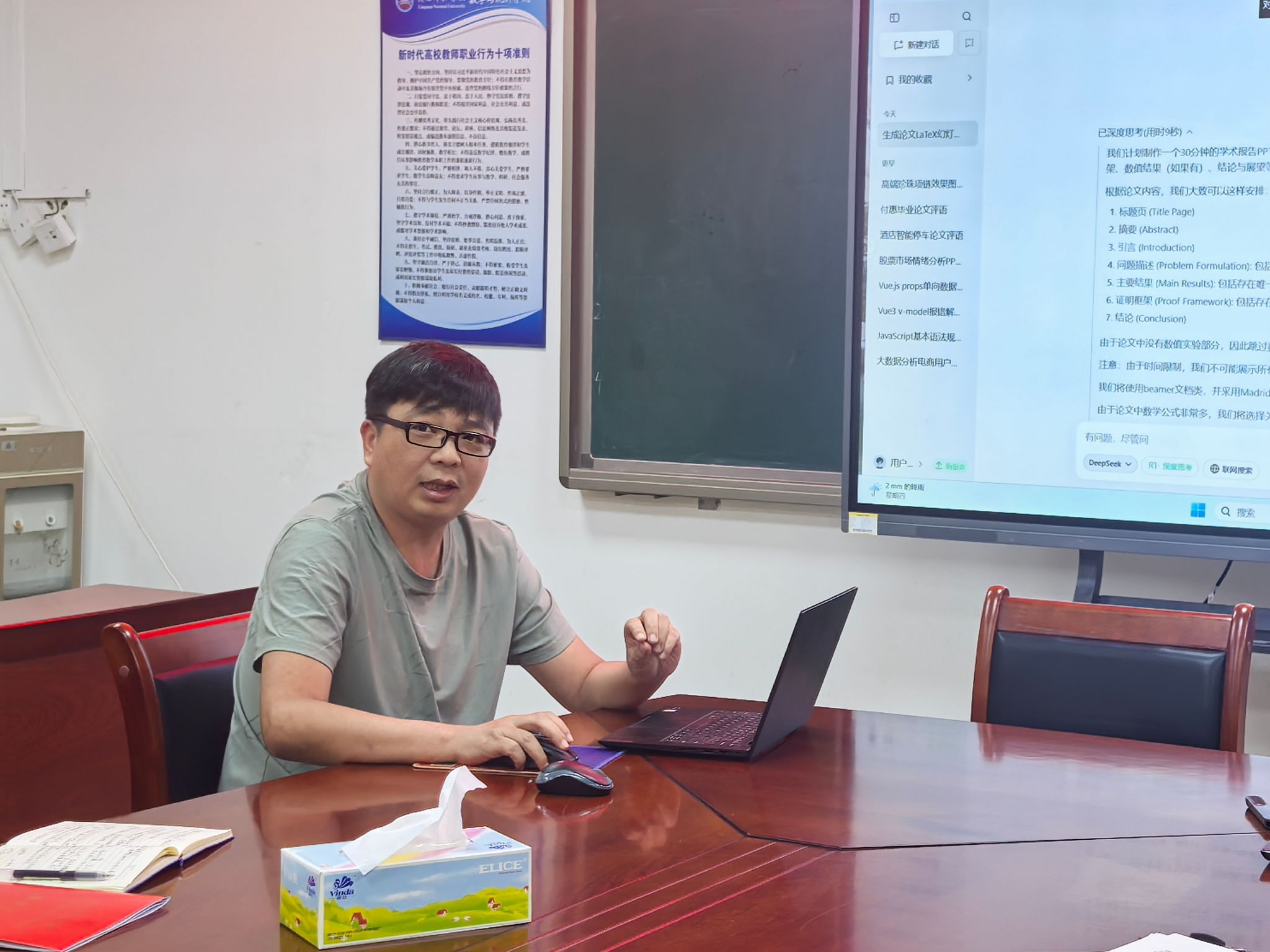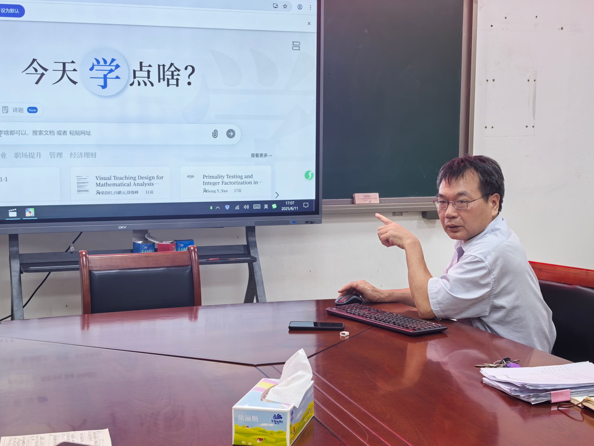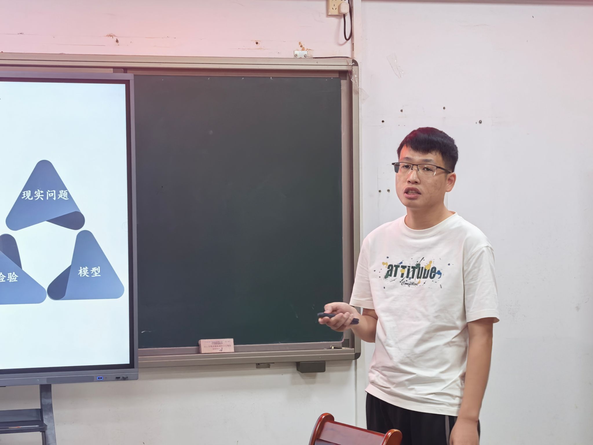 随后,薛志坚老师聚焦课堂互动,讲解利用 AI 制作教学游戏,激发学生学习兴趣的方法;潘博老师介绍学习通平台 AI 工具的运用,通过 AI 助手答疑、推送资料,助力减轻教师负担,提升教学效率。易华明老师针对传统数学建模门槛高的问题,指出 AI 可降低技术难度,但需师生掌握精准提问与结果验证能力。