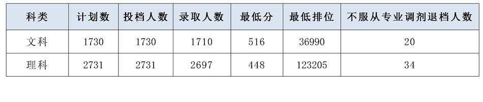 2018年广东省的本科批文理科于2018年7月17日投档。我校生源充足,生源质量进一步提高。文科投档分为516分(最低排位36990),比省控线高73分,原计划1730人,投档1730人;理科投档分为448分(最低排位123205),比省控线高72分,原计划2731人,投档2731人。文科录取最高分为571分,理科录取最高分为546分;文科有13人、理科有53人超过高分优先投档线。文理科投档我校并服从专业调剂的考生全部录取,共有54人因所报专业无法录取并且不服从调剂的考生均退档。
