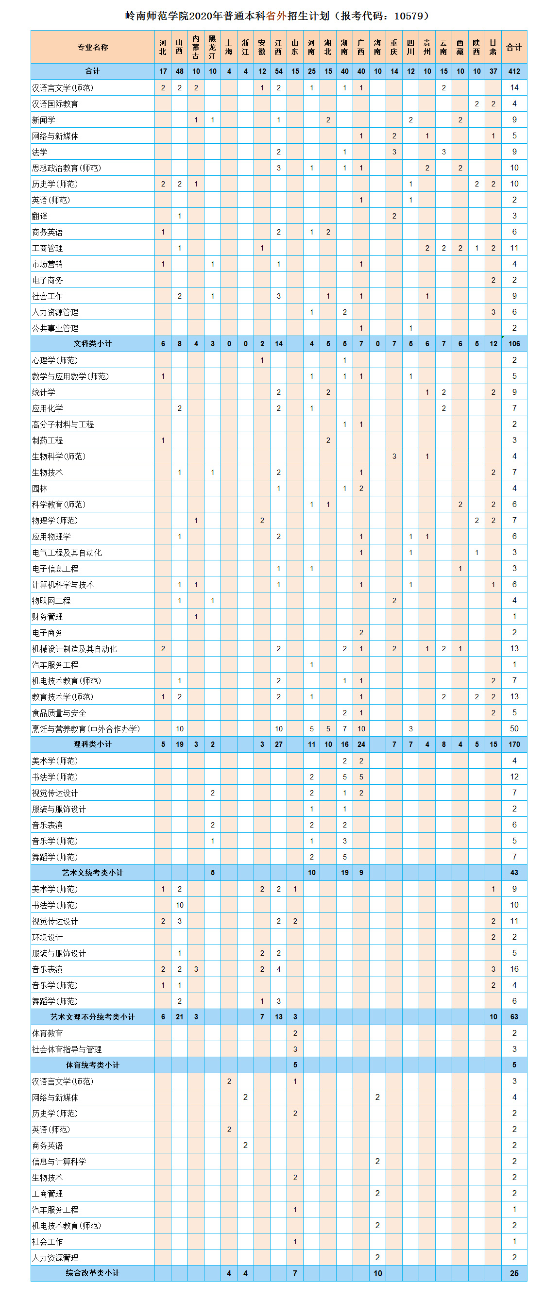 上一条:岭南师范学院2020年本科招生计划(院校代码:10579)