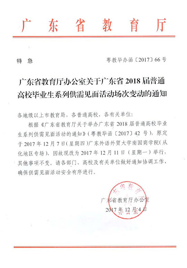 上一条:广东省2018届高校毕业生供需见面会(粤西地区专场)用人单位一览表
