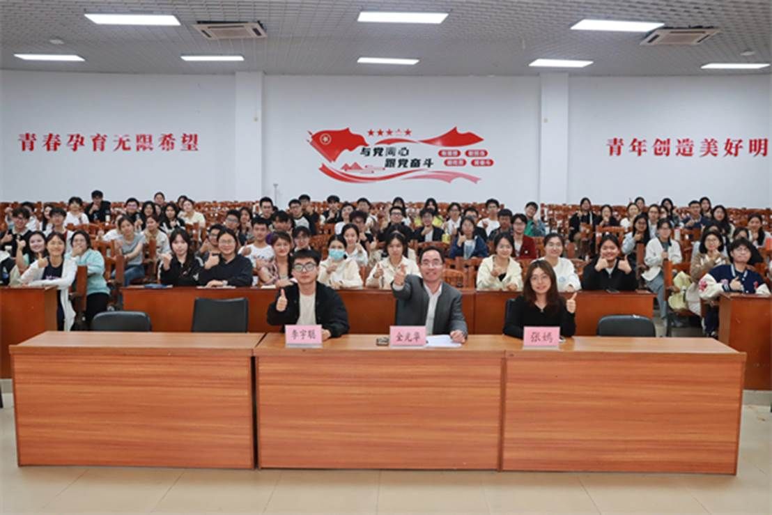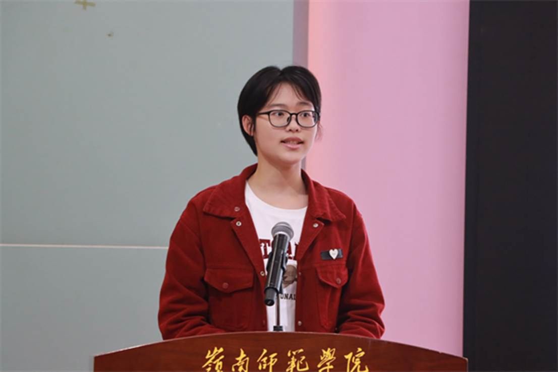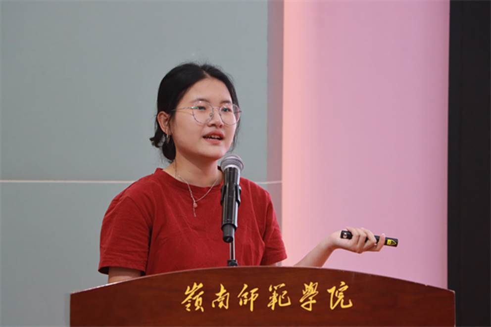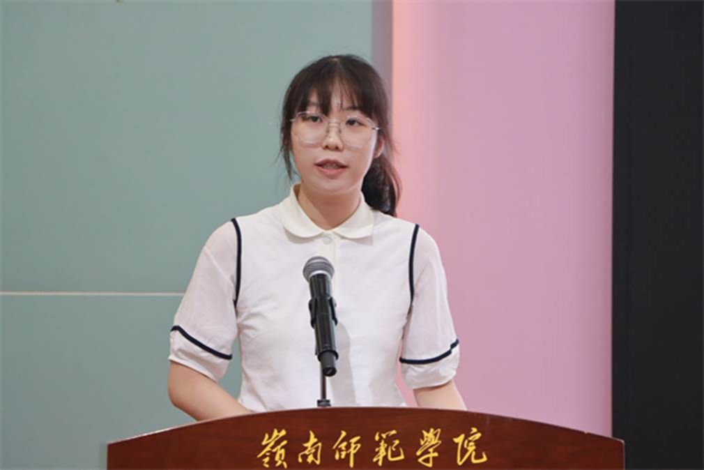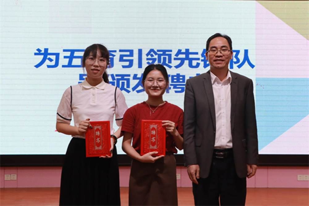 全光华副书记为两位“五育引领先锋队”队员刘家颖、李燕盈颁发了聘书。李燕盈师姐率先分享了她在新疆支教的生活经历,生动地讲述了日常管理、与学生的互动以及在新疆的生活体验,最后她表示:“人生是场旅行,尽情享受和体验。”以此鼓励同学们积极参与援疆援藏的活动。刘家颖师姐则围绕信仰、责任与成长三个关键词展开分享。她指出,在个人成长历程中,她始终以党员的标准严格要求自己,结合在学生会的学生工作,将服务同学视为践行全心全意为人民服务宗旨的具体表现。