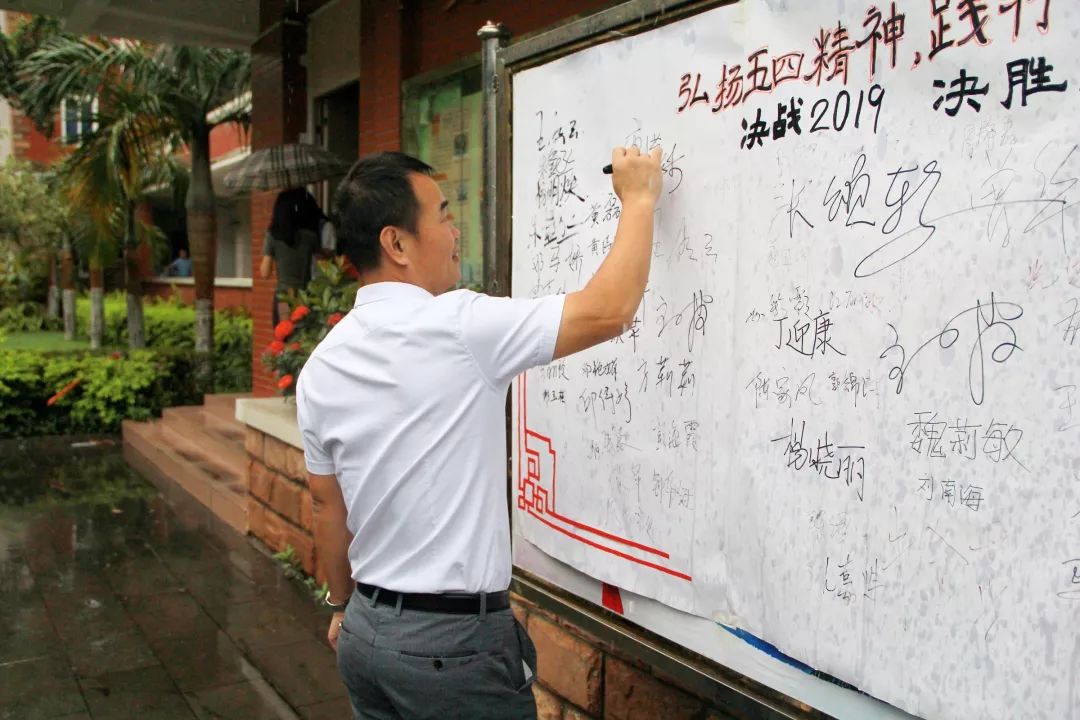 此外,为增强同学们的责任感和使命感,更好地践行五四青年精神,还向广大青年发起“弘扬五四精神,践行青春誓言,为学校决战2019,决胜2020贡献青春力量”签名倡议活动。活动现场,同学们积极响应,纷纷在倡议签名板上签上自己的名字,并表明决心,表示要为学校决战2019、决胜2020不断进取和奋斗。