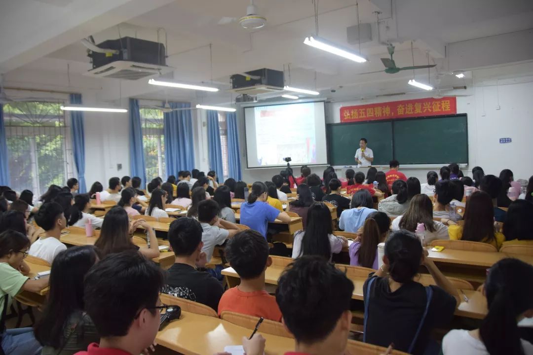 活动伊始,是以“弘扬五四精神,奋进复兴征程”为主题的理论学习活动。同学们通过观看关于五四运动的相关视频,对五四运动有了进一步的了解与认识。在此基础上,唐洪浪副书记给学院同学们讲授一堂以“奋斗的青春最美丽”为主题的党课。唐洪浪紧扣习近平总书记关于“加强对五四运动和五四精神的研究”的重要论述,将理论和具体实际事例相结合,对五四运动和五四精神进行了深刻而精准的阐述。他强调,作为新时代的大学生应认真学习和领悟五四精神,并呼吁同学们要坚定理论信念,树立家国情怀,既要仰望星空,又要脚踏实地,努力拼搏、担当有为,努力提高个人的专业水平和工作能力,为推动学院办学事业的发展和学校决胜2020贡献一份力量,争做担当民族复兴大任的时代新人。